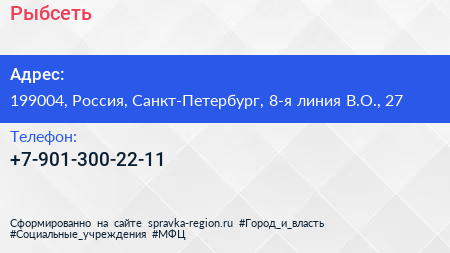 Рыбсеть по адресу 199004, Россия, Санкт-Петербург, 8-я линия В.О., 27 в дальнейшем Организация, размещена в следующих категориях: