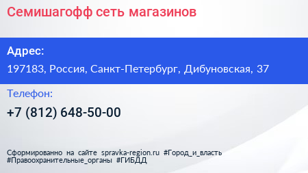 Семишагофф, сеть магазинов по адресу 197183, Россия, Санкт-Петербург, Дибуновская, 37 в дальнейшем Организация, размещена в следующих категориях: