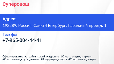 Суперовощ по адресу 192289, Россия, Санкт-Петербург, Гаражный проезд, 1 в дальнейшем Организация, размещена в следующих категориях: