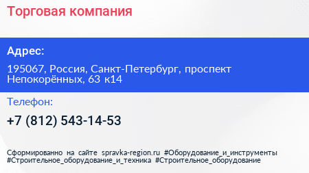 Торговая компания по адресу 195067, Россия, Санкт-Петербург, проспект Непокорённых, 63 к14 в дальнейшем Организация, размещена в следующих категориях: