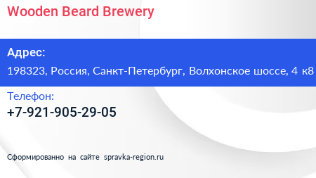 Wooden Beard Brewery по адресу 198323, Россия, Санкт-Петербург, Волхонское шоссе, 4 к8 в дальнейшем Организация, размещена в следующих категориях: