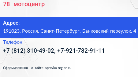 78+, мотоцентр по адресу 191023, Россия, Санкт-Петербург, Банковский переулок, 4 в дальнейшем Организация, размещена в следующих категориях: