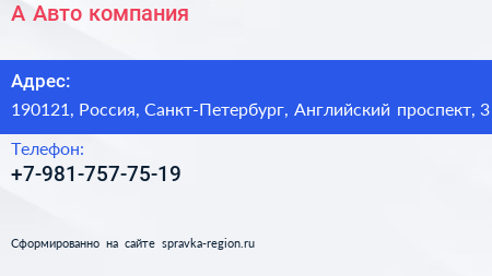 А-Авто, компания по адресу 190121, Россия, Санкт-Петербург, Английский проспект, 3 в дальнейшем Организация, размещена в следующих категориях: