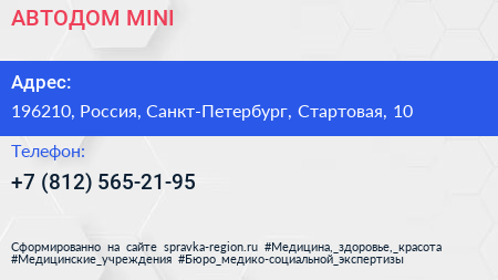 АВТОДОМ MINI по адресу 196210, Россия, Санкт-Петербург, Стартовая, 10 в дальнейшем Организация, размещена в следующих категориях: