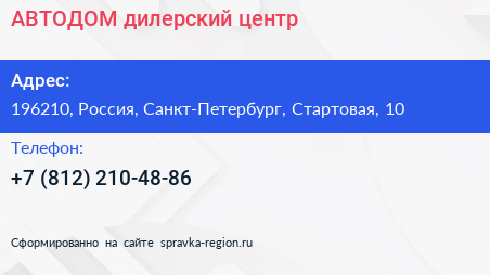 АВТОДОМ, дилерский центр по адресу 196210, Россия, Санкт-Петербург, Стартовая, 10 в дальнейшем Организация, размещена в следующих категориях: