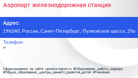 Аэропорт, железнодорожная станция по адресу 196240, Россия, Санкт-Петербург, Пулковское шоссе, 29а в дальнейшем Организация, размещена в следующих категориях: