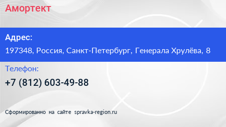 Амортект по адресу 197348, Россия, Санкт-Петербург, Генерала Хрулёва, 8 в дальнейшем Организация, размещена в следующих категориях: