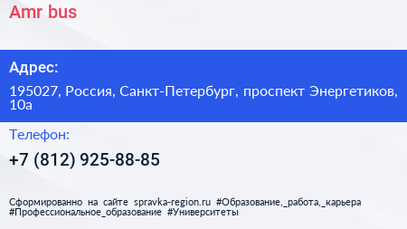 Amr-bus по адресу 195027, Россия, Санкт-Петербург, проспект Энергетиков, 10а в дальнейшем Организация, размещена в следующих категориях: