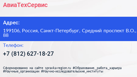 АвиаТехСервис по адресу 199106, Россия, Санкт-Петербург, Средний проспект В.О., 88 в дальнейшем Организация, размещена в следующих категориях: