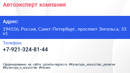 Автоэксперт, компания по адресу 194156, Россия, Санкт-Петербург, проспект Энгельса, 33 к1 в дальнейшем Организация, размещена в следующих категориях: