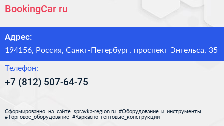 BookingCar.ru по адресу 194156, Россия, Санкт-Петербург, проспект Энгельса, 35 в дальнейшем Организация, размещена в следующих категориях:
