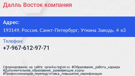 Далль-Восток, компания по адресу 193149, Россия, Санкт-Петербург, Уткина Заводь, 4 к3 в дальнейшем Организация, размещена в следующих категориях: