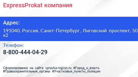 ExpressProkat, компания по адресу 191040, Россия, Санкт-Петербург, Лиговский проспект, 50 к2 в дальнейшем Организация, размещена в следующих категориях: