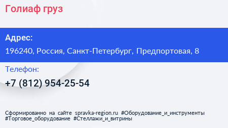 Голиаф-груз по адресу 196240, Россия, Санкт-Петербург, Предпортовая, 8 в дальнейшем Организация, размещена в следующих категориях: