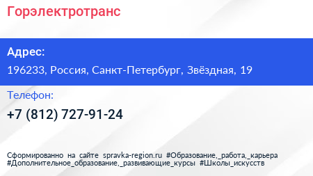 Горэлектротранс по адресу 196233, Россия, Санкт-Петербург, Звёздная, 19 в дальнейшем Организация, размещена в следующих категориях: