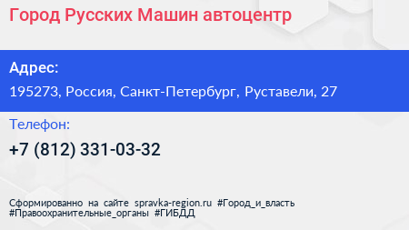 Город Русских Машин, автоцентр по адресу 195273, Россия, Санкт-Петербург, Руставели, 27 в дальнейшем Организация, размещена в следующих категориях: