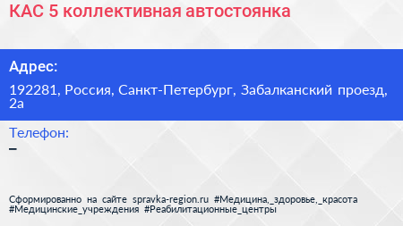 КАС-5, коллективная автостоянка по адресу 192281, Россия, Санкт-Петербург, Забалканский проезд, 2а в дальнейшем Организация, размещена в следующих категориях: