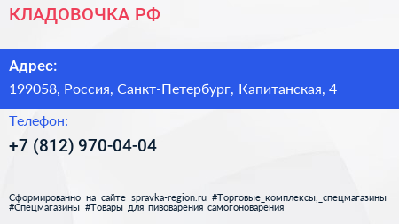 КЛАДОВОЧКА.РФ по адресу 199058, Россия, Санкт-Петербург, Капитанская, 4 в дальнейшем Организация, размещена в следующих категориях: