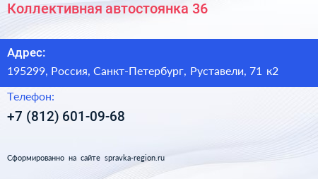 Коллективная автостоянка №36 по адресу 195299, Россия, Санкт-Петербург, Руставели, 71 к2 в дальнейшем Организация, размещена в следующих категориях: