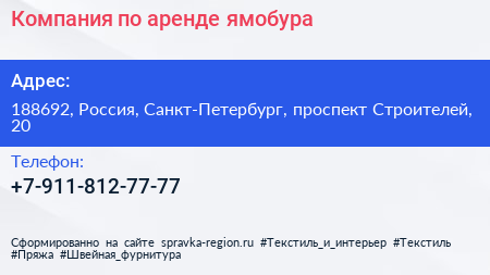 Компания по аренде ямобура по адресу 188692, Россия, Санкт-Петербург, проспект Строителей, 20 в дальнейшем Организация, размещена в следующих категориях: