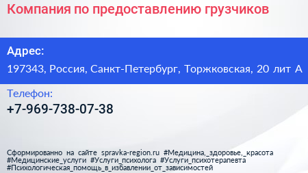 Компания по предоставлению грузчиков по адресу 197343, Россия, Санкт-Петербург, Торжковская, 20 лит А в дальнейшем Организация, размещена в следующих категориях: