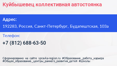 Куйбышевец, коллективная автостоянка по адресу 192283, Россия, Санкт-Петербург, Будапештская, 103а в дальнейшем Организация, размещена в следующих категориях: