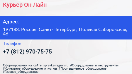 Курьер Он Лайн по адресу 197183, Россия, Санкт-Петербург, Полевая Сабировская, 46 в дальнейшем Организация, размещена в следующих категориях: