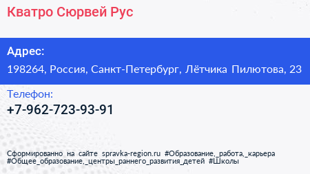 Кватро Сюрвей Рус по адресу 198264, Россия, Санкт-Петербург, Лётчика Пилютова, 23 в дальнейшем Организация, размещена в следующих категориях: