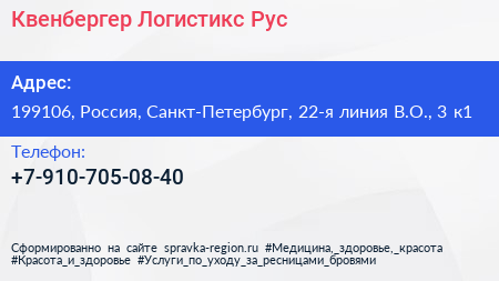 Квенбергер Логистикс Рус по адресу 199106, Россия, Санкт-Петербург, 22-я линия В.О., 3 к1 в дальнейшем Организация, размещена в следующих категориях: