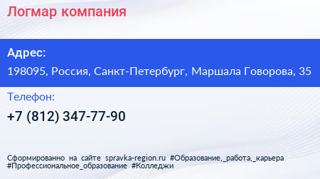 Логмар, компания по адресу 198095, Россия, Санкт-Петербург, Маршала Говорова, 35 в дальнейшем Организация, размещена в следующих категориях: