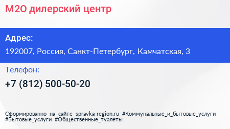 M2O, дилерский центр по адресу 192007, Россия, Санкт-Петербург, Камчатская, 3 в дальнейшем Организация, размещена в следующих категориях: