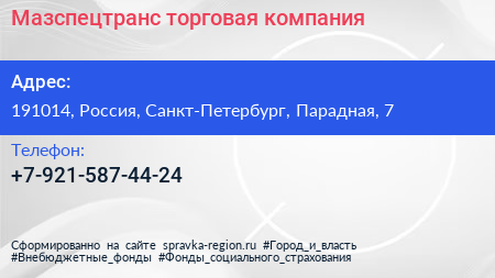 Мазспецтранс, торговая компания по адресу 191014, Россия, Санкт-Петербург, Парадная, 7 в дальнейшем Организация, размещена в следующих категориях: