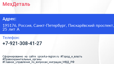 МехДеталь по адресу 195176, Россия, Санкт-Петербург, Пискарёвский проспект, 25 лит А в дальнейшем Организация, размещена в следующих категориях: