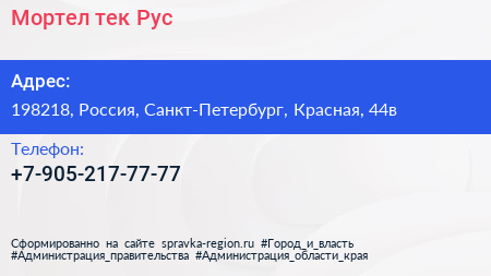 Мортел.тек Рус по адресу 198218, Россия, Санкт-Петербург, Красная, 44в в дальнейшем Организация, размещена в следующих категориях: