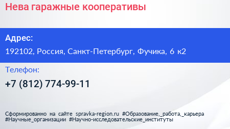Нева, гаражные кооперативы по адресу 192102, Россия, Санкт-Петербург, Фучика, 6 к2 в дальнейшем Организация, размещена в следующих категориях: