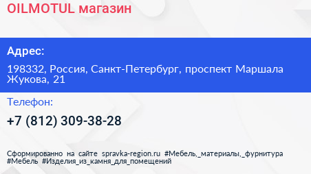 OILMOTUL, магазин по адресу 198332, Россия, Санкт-Петербург, проспект Маршала Жукова, 21 в дальнейшем Организация, размещена в следующих категориях: