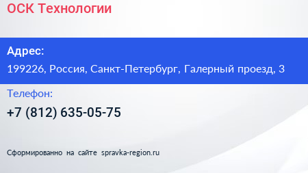 ОСК-Технологии по адресу 199226, Россия, Санкт-Петербург, Галерный проезд, 3 в дальнейшем Организация, размещена в следующих категориях: