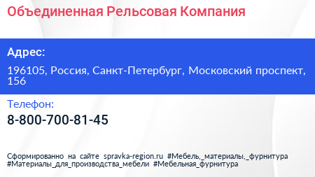 Объединенная Рельсовая Компания по адресу 196105, Россия, Санкт-Петербург, Московский проспект, 156 в дальнейшем Организация, размещена в следующих категориях: