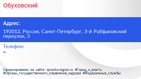 Обуховский по адресу 192012, Россия, Санкт-Петербург, 3-й Рабфаковский переулок, 3 в дальнейшем Организация, размещена в следующих категориях: