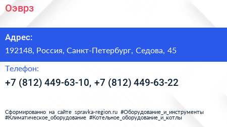 Оэврз по адресу 192148, Россия, Санкт-Петербург, Седова, 45 в дальнейшем Организация, размещена в следующих категориях: