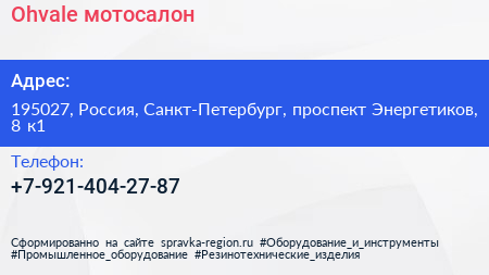 Ohvale, мотосалон по адресу 195027, Россия, Санкт-Петербург, проспект Энергетиков, 8 к1 в дальнейшем Организация, размещена в следующих категориях: