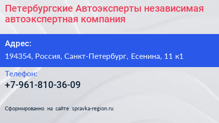 Петербургские Автоэксперты, независимая автоэкспертная компания по адресу 194354, Россия, Санкт-Петербург, Есенина, 11 к1 в дальнейшем Организация, размещена в следующих категориях: