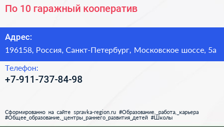 По-10, гаражный кооператив по адресу 196158, Россия, Санкт-Петербург, Московское шоссе, 5а в дальнейшем Организация, размещена в следующих категориях: