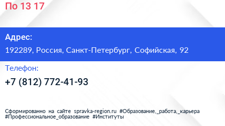 По-13/17 по адресу 192289, Россия, Санкт-Петербург, Софийская, 92 в дальнейшем Организация, размещена в следующих категориях: