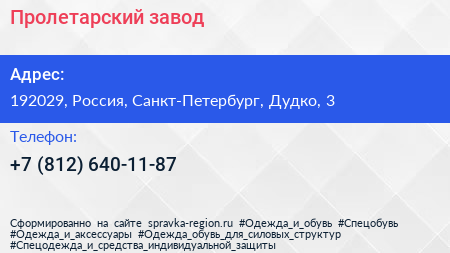 Пролетарский завод по адресу 192029, Россия, Санкт-Петербург, Дудко, 3 в дальнейшем Организация, размещена в следующих категориях: