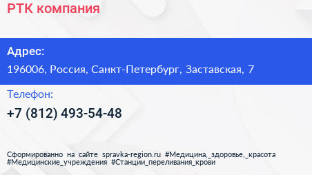 РТК, компания по адресу 196006, Россия, Санкт-Петербург, Заставская, 7 в дальнейшем Организация, размещена в следующих категориях: