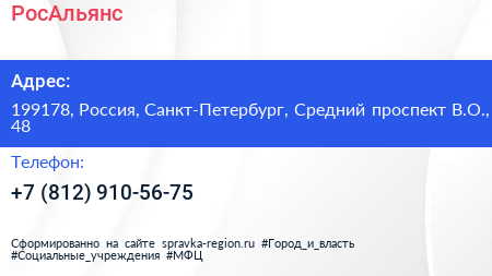РосАльянс по адресу 199178, Россия, Санкт-Петербург, Средний проспект В.О., 48 в дальнейшем Организация, размещена в следующих категориях: