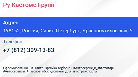 Ру-Кастомс Групп по адресу 198152, Россия, Санкт-Петербург, Краснопутиловская, 5 в дальнейшем Организация, размещена в следующих категориях: