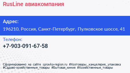RusLine, авиакомпания по адресу 196210, Россия, Санкт-Петербург, Пулковское шоссе, 41 в дальнейшем Организация, размещена в следующих категориях: