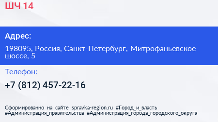 ШЧ-14 по адресу 198095, Россия, Санкт-Петербург, Митрофаньевское шоссе, 5 в дальнейшем Организация, размещена в следующих категориях: